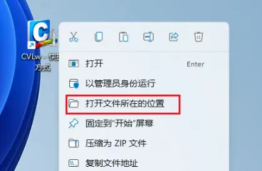 21. 桌面图标”CVLw-快捷方式”鼠标右键选择”打开文件所在的位置“;