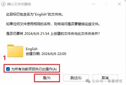 24. ①勾选“为所有当前项目执行此操作”; ②点击“是”;