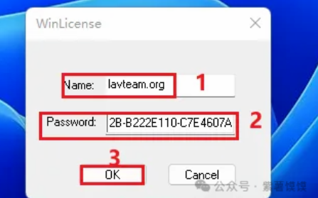 29. ①在”Name“后面输入”lavteam.org“;②在”Password“后面输入”5CEB050C-6ECC0D2B-B222E110-C7E4607A”③点击”ok”; 【温馨提示:每次打开此软件,都要输入以上信息,请妥善保存;】