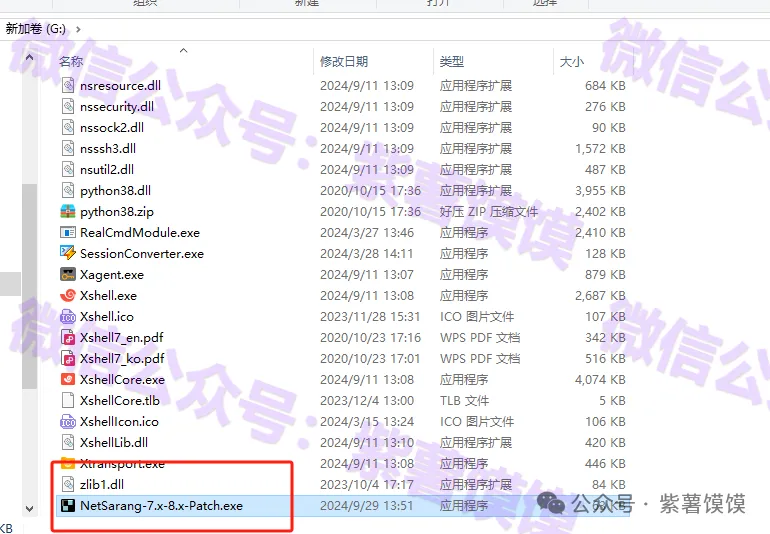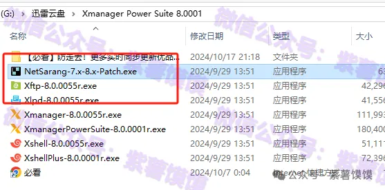 9.返回之前解压的“Xmanager Power Suite 8.0001”文件夹,选中“NetSarang-7.x-8.x-Patch.exe”文件,鼠标右键点击“复制”