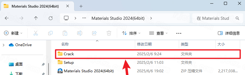 14..打开安装包解压后的【Materials Studio 2024(64bit)】文件夹,双击打开【Crack】文件夹