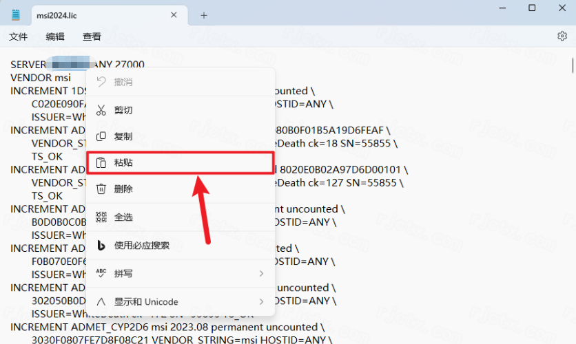 15.鼠标右击【msi2024…】打开方式选择【记事本】打开