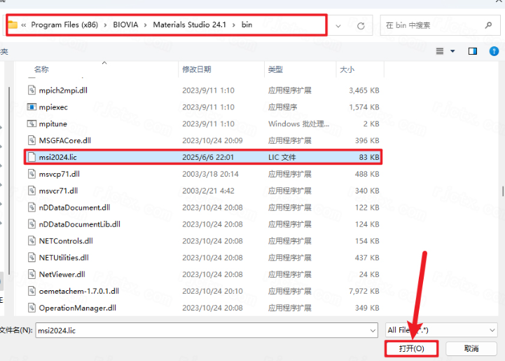 24.打开步骤21地址栏中的位置并选中【msi2024】,点击【打开】