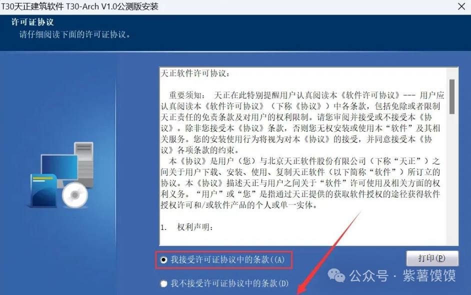 温馨提示:天正T30V1.0包含的产品有:建筑、电气、结构、暖通、给排水。安装步骤完全一样,以“天正建筑”安装步骤为例