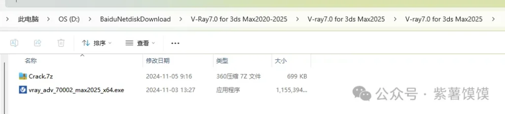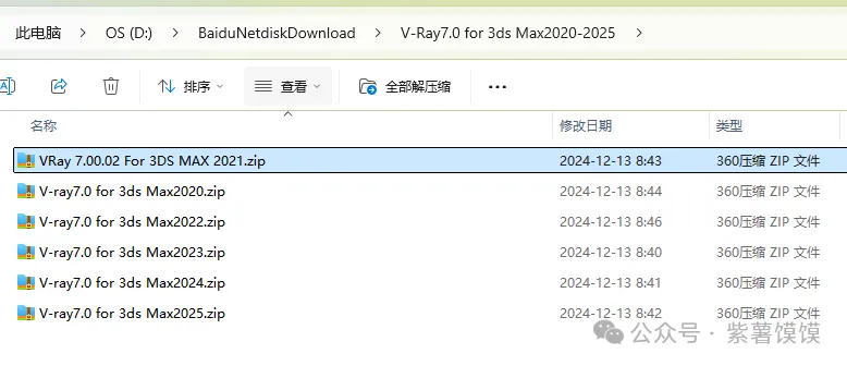 下载链接中包含支持3ds Max2020-2025的V-ray渲染器,根据自己电脑上安装的3ds Max版本下载对应的V-ray,如:3ds Max2025则下载V-ray for 3ds Max2025,该插件各个版本的安装步骤完全相同,通用安装教程如下