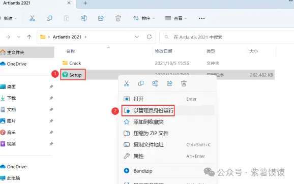 3、找到【Setup】应用程序,右键选择【以管理员身份运行】它