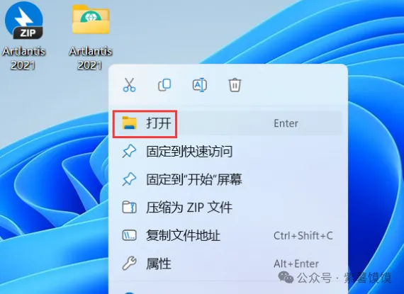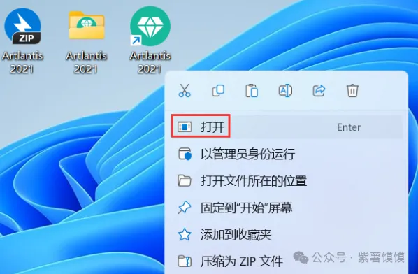 18、回到桌面,右键桌面上的【Artlantis 2021软件图标】,点击【打开】