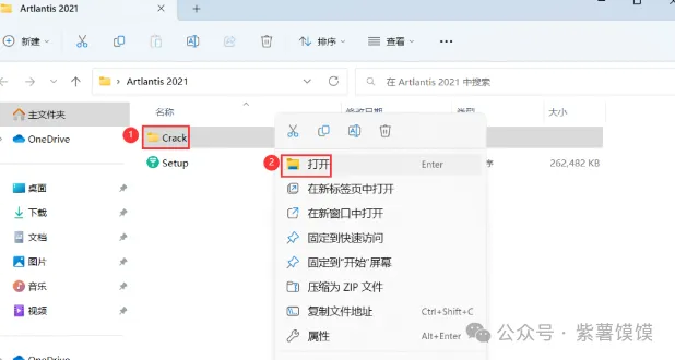 12、回到Artlantis 2021文件夹,找到【Crack】文件夹,右键【打开】它