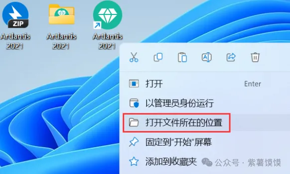 15、右键桌面上的【Artlantis 2021软件图标】,点击【打开文件所在的位置】