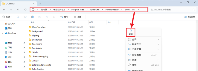 8.打开如图所示的目录,鼠标在空白处右击,点击【粘贴】