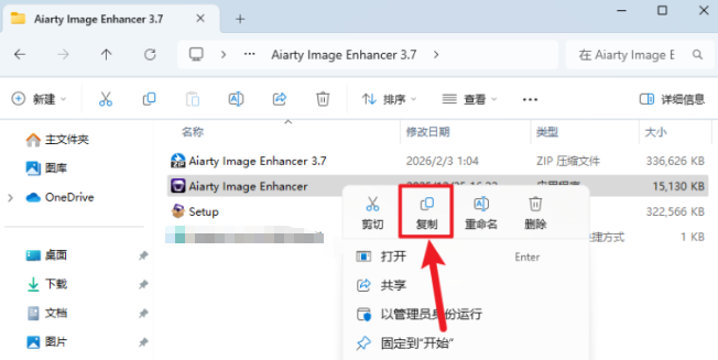 6.打开安装包解压后的【Aiarty Image Enhancer 3.3(64bit)】文件夹,鼠标右击【Aiarty Image Enhancer】选择【复制】