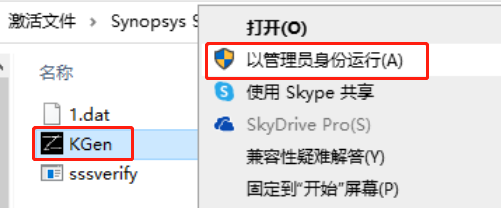 进入 Synopsys SSS Feature Keygen 文件夹,以管理员身份打开 KGen