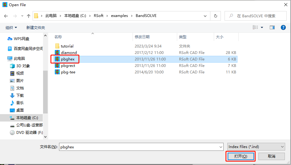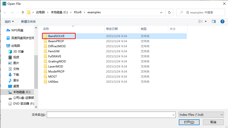 接下来看软件能否正常运行,点击 File 栏下的 Open,选择 BandSOLVE 文件夹,随便选择一个打开,软件能够正常显示,说明可以运行