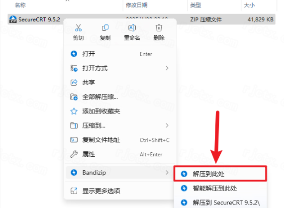 1.下载完成后,鼠标右击【SecureCRT 9.5.2】压缩包,选择【解压至此处】