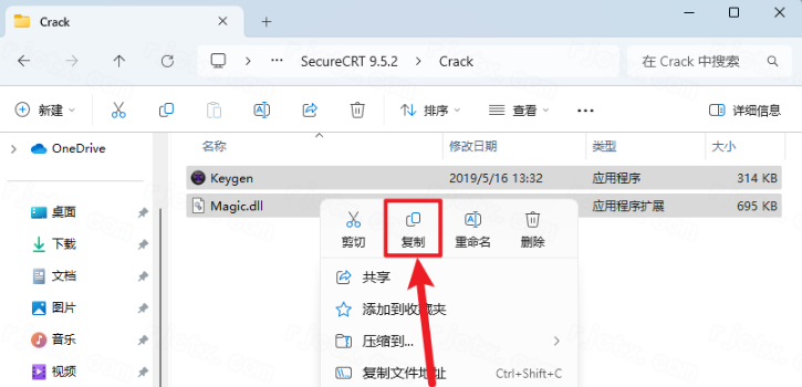 13.回到SecureCRT 9.5.2文件夹,找到【Crack】文件夹,右键【打开】它