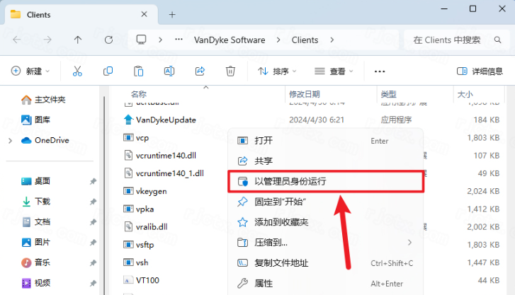 17.找到粘贴的【Keygen】程序,右键选择【以管理员身份运行】它