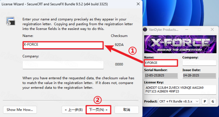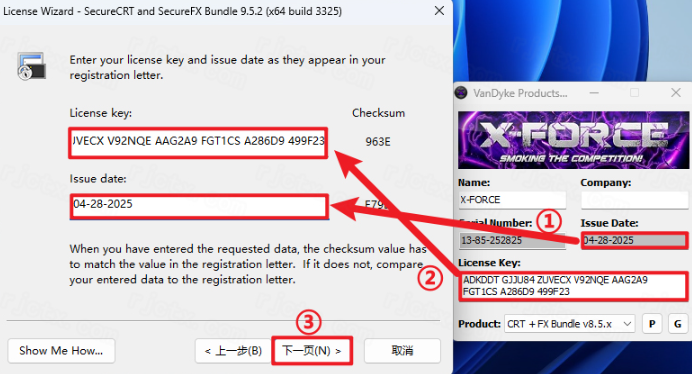 28.将程序的Issue Data输入到软件的Issue Data内,将程序的License Key输入到软件的License Key内,再点击【下一页】