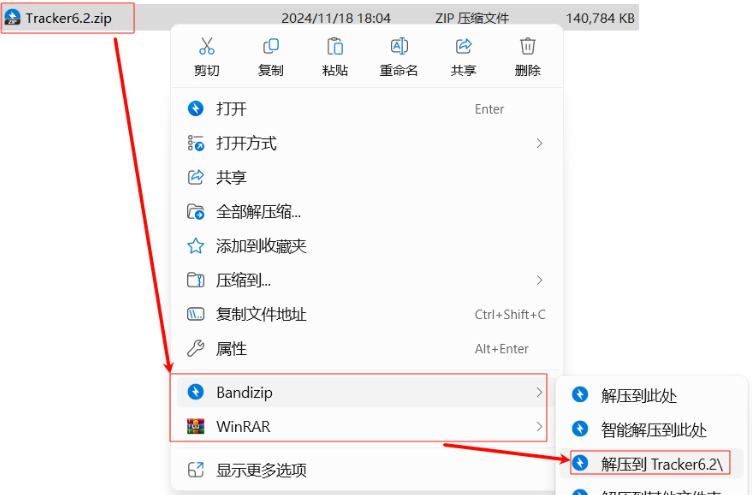 1.选中下载好的安装包,右键解压到“Tracker6.2”文件夹