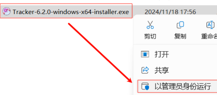 2.选中“Tracker-6.2.0-windows-x64-installer.ex”右键以管理员身份运行