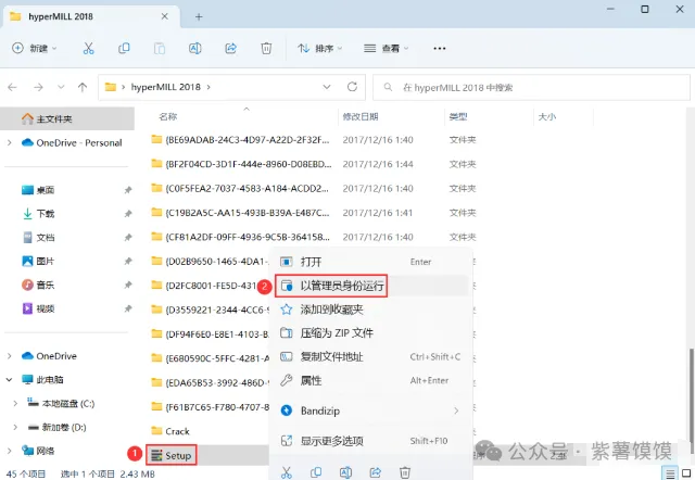 3、找到【Setup】应用程序,右键选择【以管理员身份运行】它