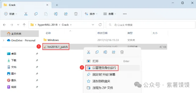 15、找到【hm2018.1_patch】应用程序,右键选择【以管理员身份运行】它