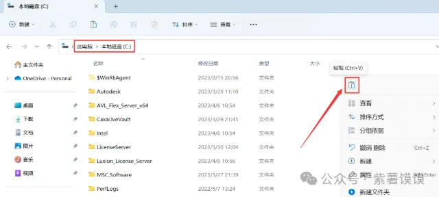 21、右键文件夹的空白处,点击【粘贴按钮】