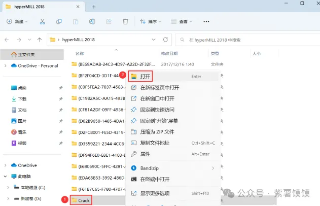 14、回到hyperMILL 2018文件夹,找到【Crack】文件夹,右键【打开】它