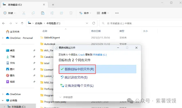 22、点击【替换目标中的文件】