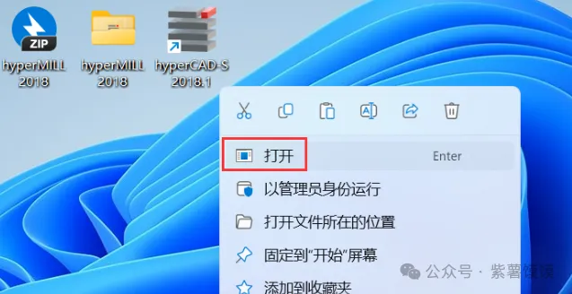 24、回到桌面,右键桌面上的【hyperCAD-S 2018.1软件图标】,点击【打开】