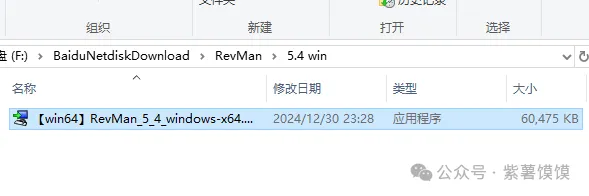 1.将安装包下载到电脑磁盘中,选择非系统自带的解压工具,解压到当前文件夹,进入解压后的文件夹【win64】RevMan 5 4 windows-x64.exe运行