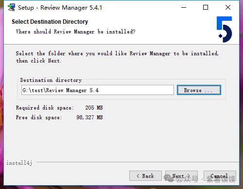 4.点击【Browse】更改软件的安装位置,例如我将软件安装在H盘的RevMan文件夹,点击【Next】