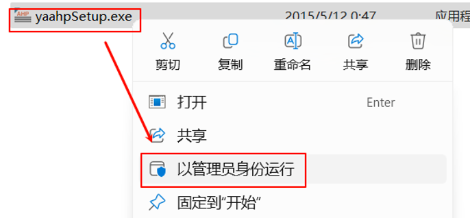 2.选中“yaahpSetup.exe”右键以管理员身份运行