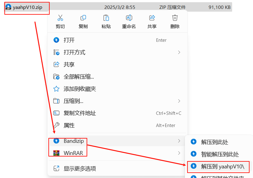1.选中下载好的安装包,右键解压到“yaahpV10”文件夹