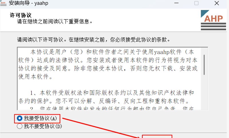 4.勾选协议,点击“下一步”