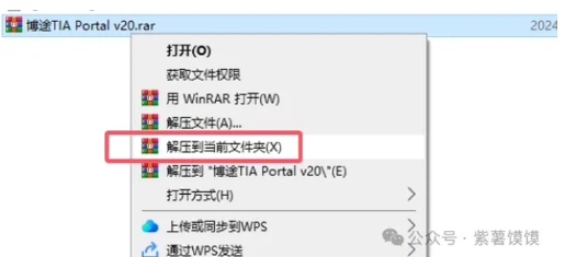 6.选择【TIA_Portal_STEP7_Prof_Safety_WINCC_DVD_1_V20.iso】鼠标右键,点击【装载】,如果你电脑没有装载的话,就选择【解压到”TIA Portal STEP7 Prof Safety WINCC DVD 1 V20\”(E)】的方式