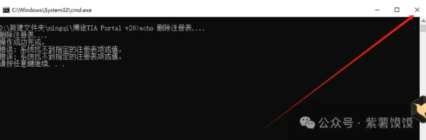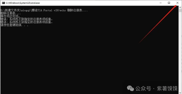 21.提示请按任意键继续后,点击x关闭