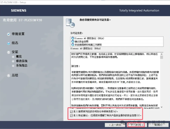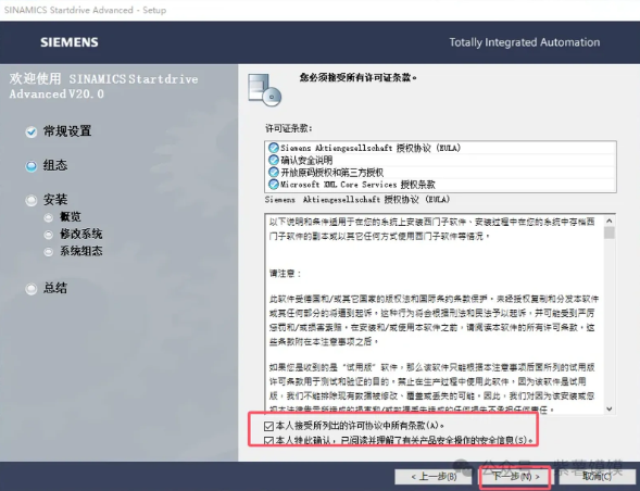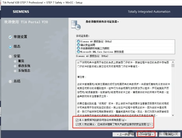 27.软件许可证接受,勾选2个接受的选项,然后下一步