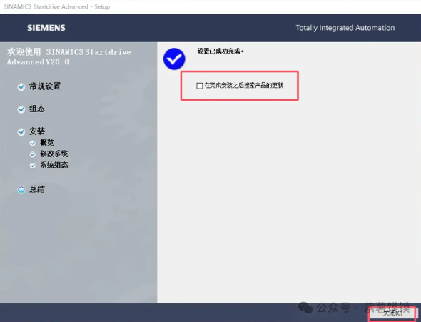 41.安装完成,取消勾选【在完成安装之后搜索产品的更新】,点击关闭
