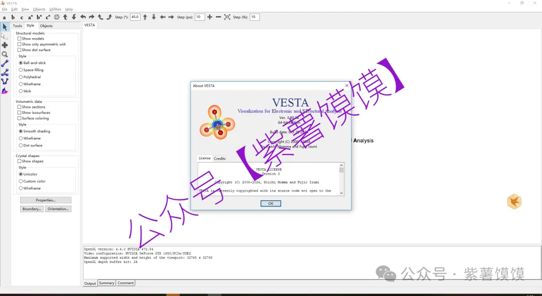 VESTA 是一款跨平台的三维可视化系统,专注于晶体结构和电子密度等体积数据的展示。它的功能非常强大: 多种结构模型展示:支持球棍模型、空间填充模型、多面体模型等多种展示方式,满足不同研究需求