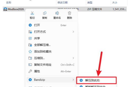 1.下载完成后,鼠标右击【Autodesk Mudbox 2026】压缩包,选择【解压至此处】