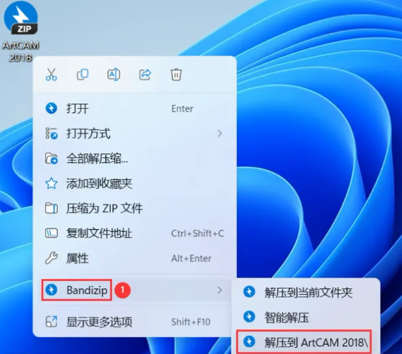 1、下载ArtCAM 2018软件安装包到电脑上,右键选择【解压到ArtCAM 2018\】