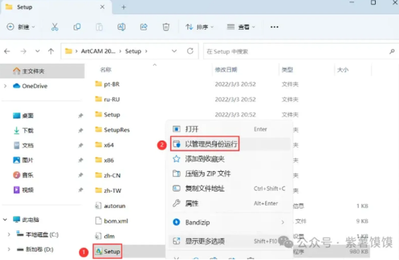 4、找到【Setup】应用程序,右键选择【以管理员身份运行】它