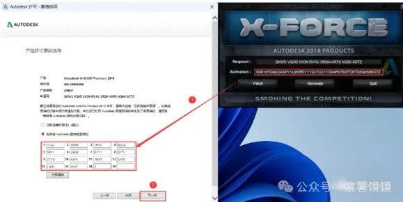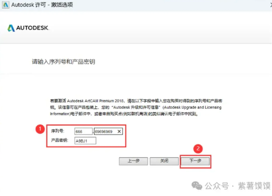 22、将程序的【Activation】输入到软件的【激活码】输入内,可复制粘贴,再点击【下一步】