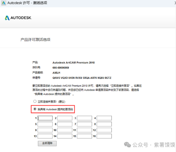 16、点击【我具有Autodesk提供的激活码】