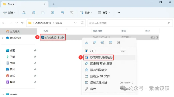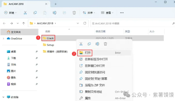 17、回到ArtCAM 2018文件夹,找到【Crack】文件夹,右键【打开】它