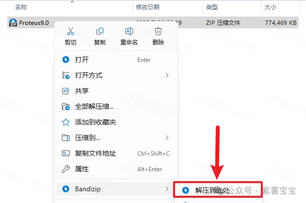 1.下载完成后,鼠标右击【Proteus 9.0】压缩包,选择【解压至此处】