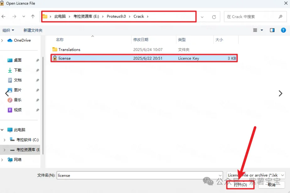 19.打开安装包解压后的【Crack】文件夹并选中【Licence】文件,点击【打开】