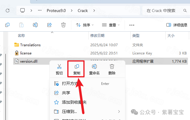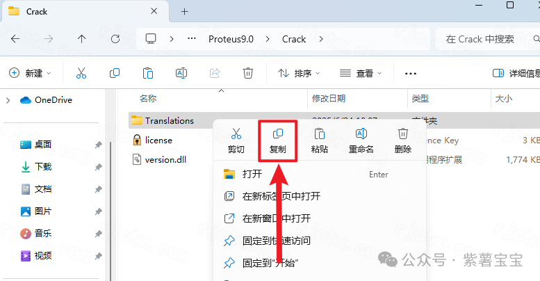 27.继续在打开的【Crack】文件夹中,鼠标右击【Translations】文件夹选择【复制】