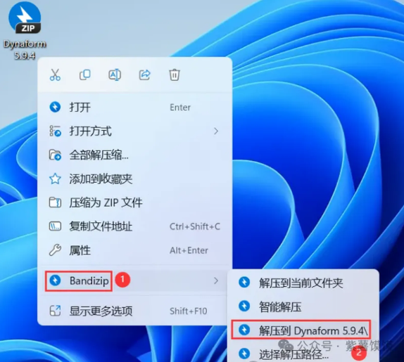 1、下载Dynaform 5.9.4软件安装包到电脑上,右键选择【解压到Dynaform 5.9.4\】