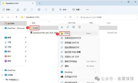 17、回到Dynaform 5.9.4文件夹,找到【Crack】文件夹,右键【打开】它